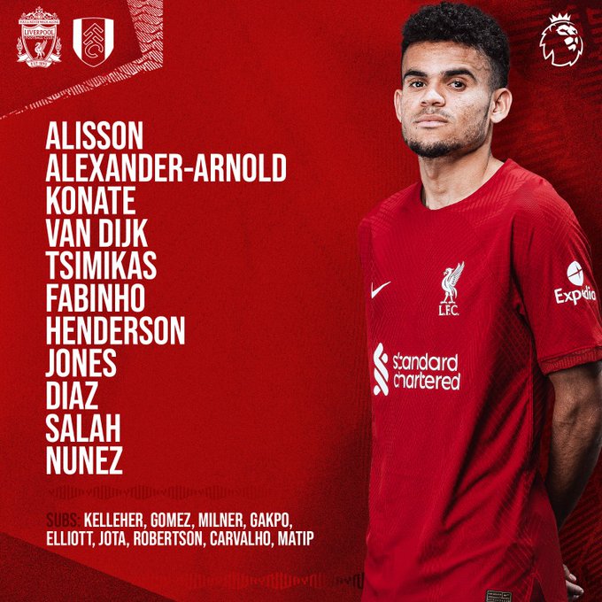 Liverpool (4-3-3): Alisson, Robertson, Van Dijk, Konate, Alexander-Arnold, Jones, Fabinho, Elliott, Salah, Gakpo, Diaz