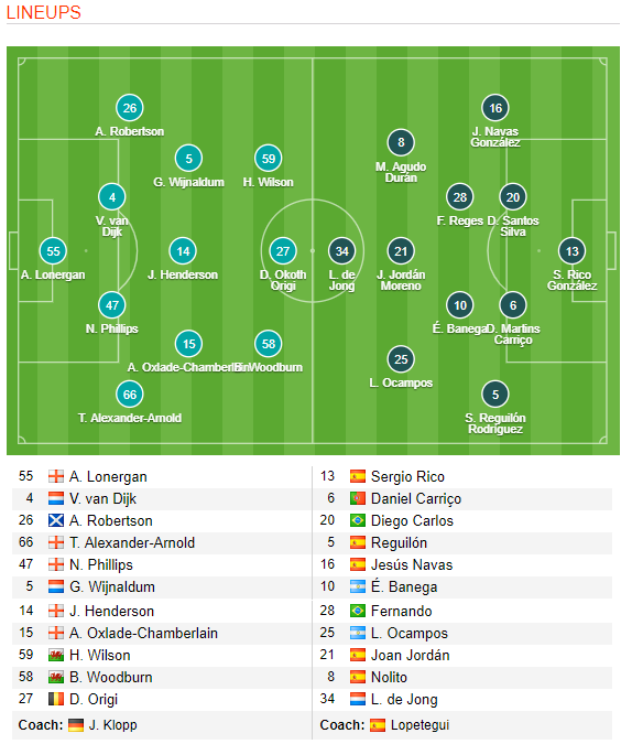 AEGoal.net cập nhật chính xác ĐỘI HÌNH RA SÂN trận Liverpool vs Sevilla diễn ra lúc 05h00 ngày 22/7 trong khuôn khổ Giao hữu CLB.