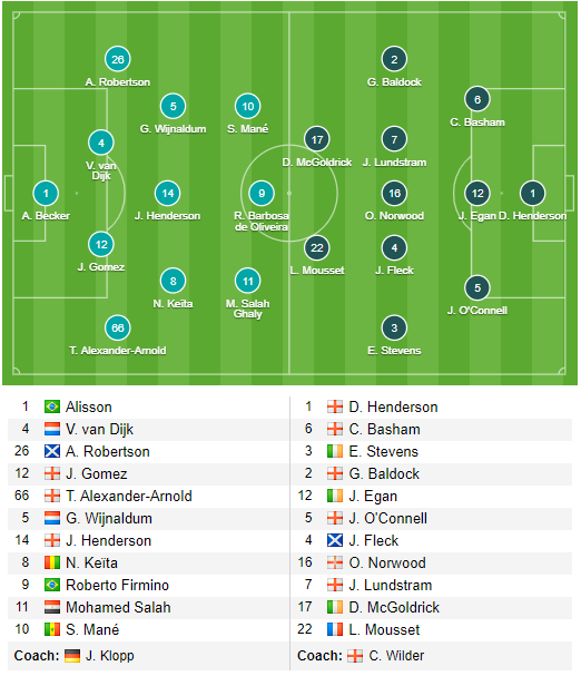 AEGoal.net cập nhật chính xác ĐỘI HÌNH RA SÂN trận Liverpool vs Sheffield United diễn ra lúc 03h00 ngày 03/01 trong khuôn khổ vòng 21 giải Ngoại Hạng Anh.