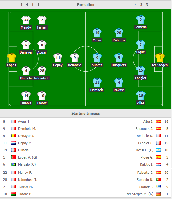 AEGoal.net cập nhật chính xác ĐỘI HÌNH RA SÂN trận Lyon vs Barcelona diễn ra lúc 3h00 ngày 20/2 trong khuôn khổ Vòng 1/8 UEFA Champions League.