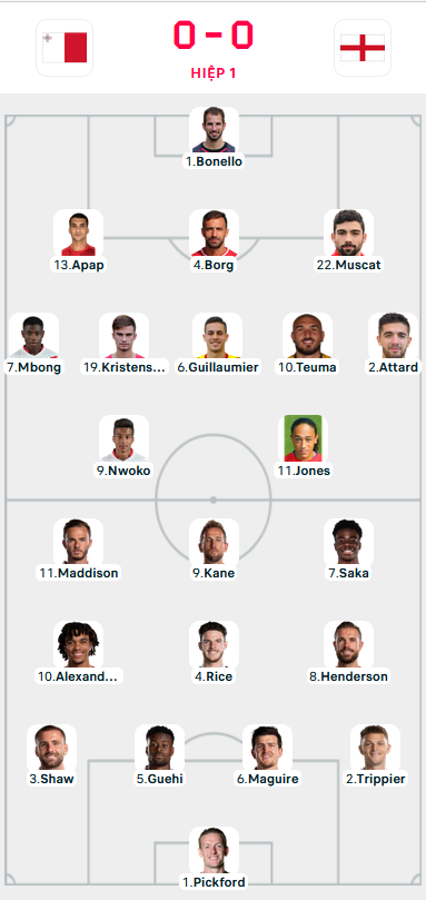 AEGoal cập nhật chính xác đội hình ra sân trận Malta vs Anh diễn ra lúc 01h45 ngày 17/6 trong khuôn khổ vòng loại Euro 2024.