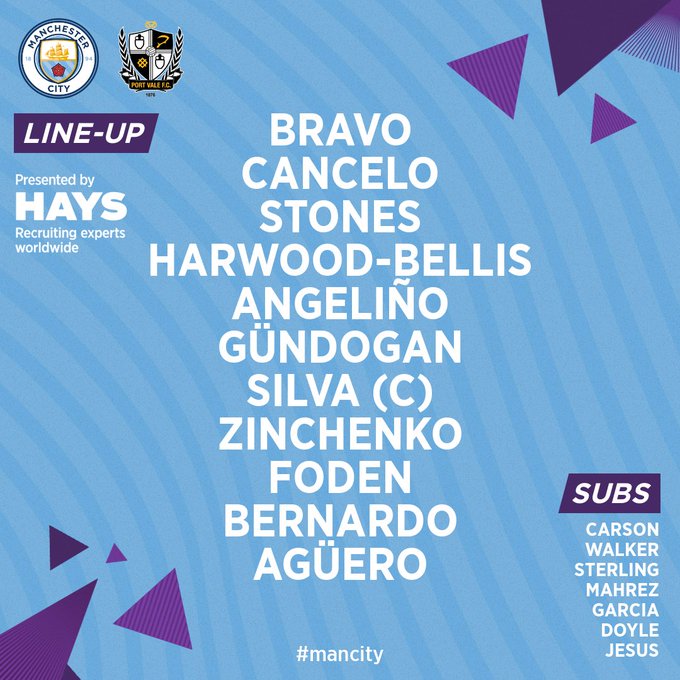 AEGoal.net cập nhật chính xác ĐỘI HÌNH RA SÂN trận Man City vs Port Vale diễn ra lúc 00h30 ngày 05/01 trong khuôn khổ vòng 3 Cúp FA - Anh.