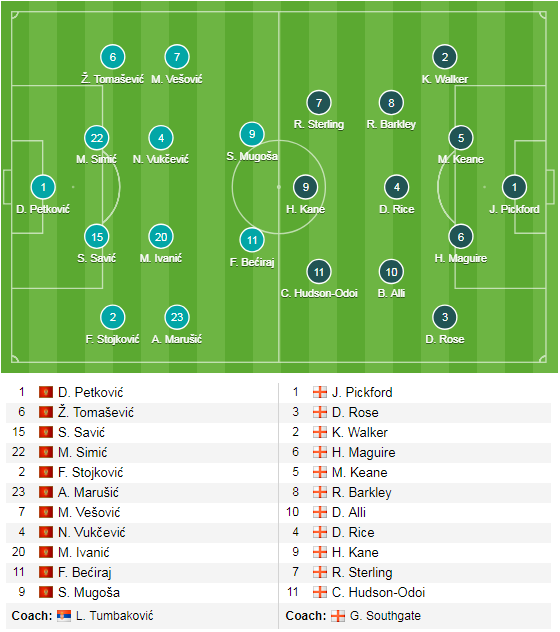 ĐỘI HÌNH RA SÂN trận Montenegro vs Anh, 02h45 ngày 26/3: Vòng loại Euro 2020