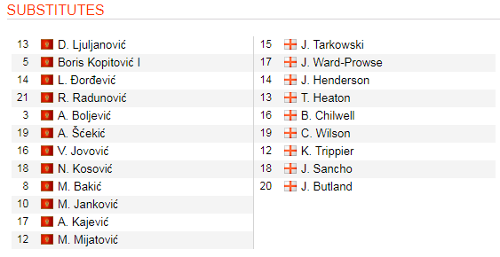 * Danh sách dự bị trận Montenegro vs Anh, 02h45 ngày 26/3: Vòng loại EURO 2020