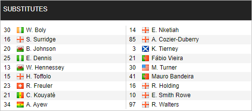* Danh sách dự bị trận Nottingham vs Arsenal (23h30 ngày 20/5)