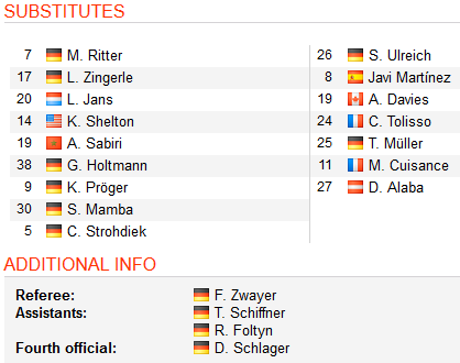 DỰ BỊ: Ulreich, Martinez, Cuisance, Davies, Tolisso, Muller, Alaba