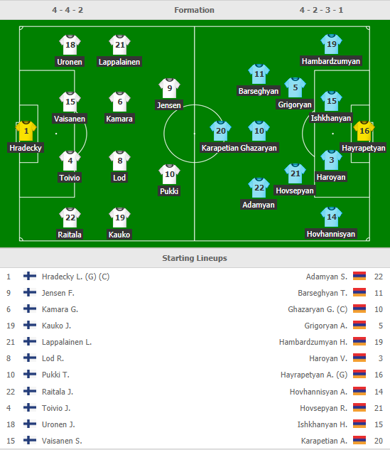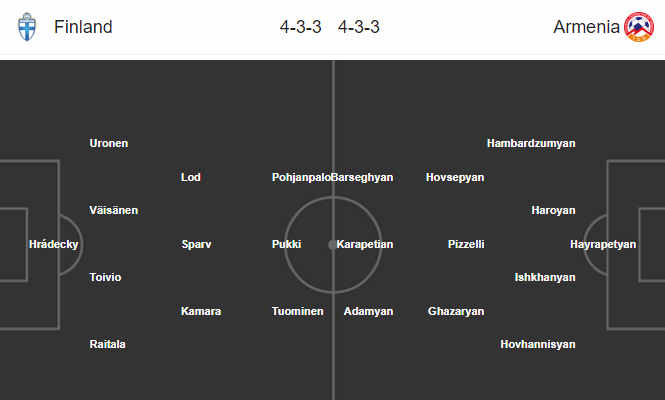 AEGoal.net cập nhật chính xác ĐỘI HÌNH RA SÂN trận Phần Lan vs Armenia diễn ra lúc 23h00 ngày 15/10 trong khuôn khổ vòng loại Euro 2020
