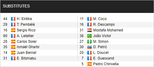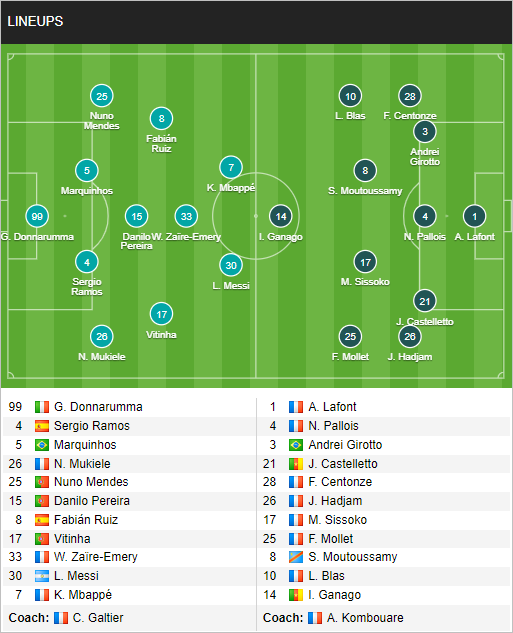 - PSG: Marco Verratti dính án treo giò; trong khi Neymar, Presnel Kimpembe và Renato Sanches vắng mặt vì chấn thương; trong khi Achraf Hakimi cũng chưa đủ điều kiện thi đấu.