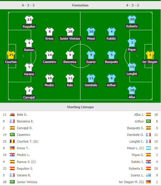 AEGoal.net cập nhật chính xác ĐỘI HÌNH RA SÂN trận Real Madrid vs Barcelona diễn ra lúc 02h45 ngày 03/3 trong khuôn khổ Vòng 27 giải VĐQG Tây Ban Nha, La Liga.