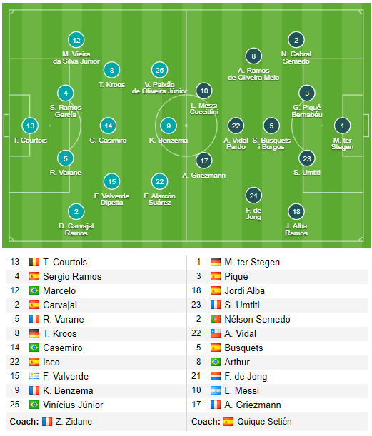 AEGoal.net cập nhật chính xác ĐỘI HÌNH RA SÂN trận Real Madrid vs Barcelona diễn ra lúc 03h00 ngày 02/03 trong khuôn khổ Vòng 26 - VĐQG Tây Ban Nha.