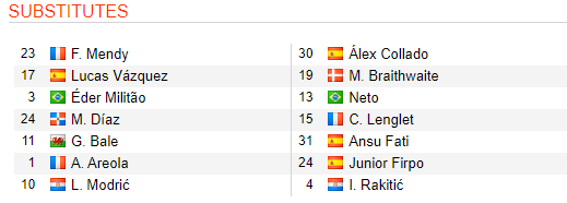 * Danh sách dự bị trận Real Madrid vs Barcelona, 03h00 ngày 02/3: VĐQG Tây Ban Nha