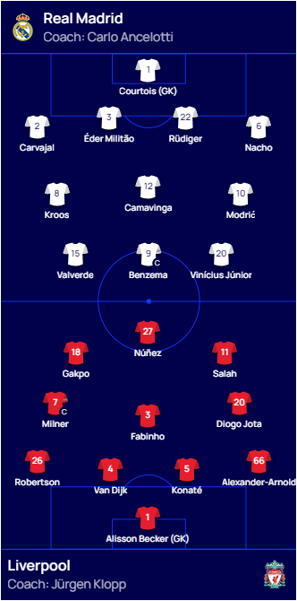 AEGoal cập nhật chính xác ĐỘI HÌNH RA SÂN trận Real Madrid vs Liverpool diễn ra lúc 03h00 ngày 16/03/2023 trong khuôn khổ Cúp C1 Châu Âu.