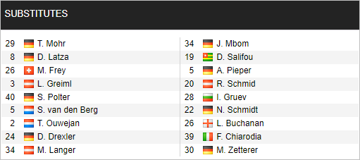 Schalke: Fahrmann; Brunner, Yoshida, Jenz, Uronen; Latza, Krauss; Kozuki, Bulter, Skarke; Frey.