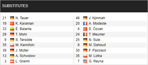 - Schalke: Polter, Heekeren, van den Berg, Ouwejan chấn thương; Balanta, Uronen, Skarke, Drexler, Kozuki, Brunner (nghi ngờ).