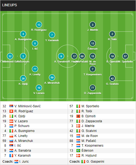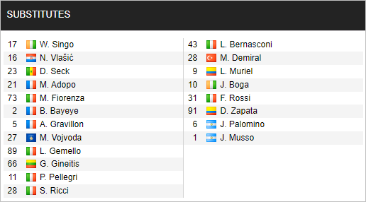 * Danh sách dự bị trận Torino vs Atalanta (01h45 ngày 30/4)