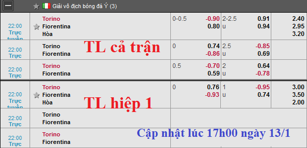 + Torino vs Fiorentina (Cúp Quốc gia Italia)