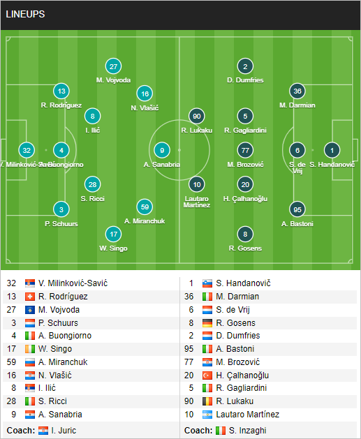 * Đội hình ra sân trận Torino vs Inter Milan (23h30 ngày 03/6)