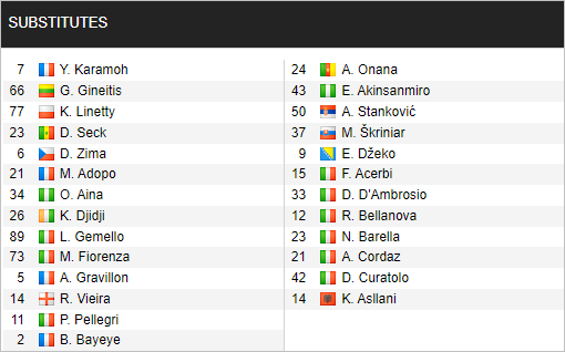 * Danh sách dự bị trận Torino vs Inter Milan (23h30 ngày 03/6)
