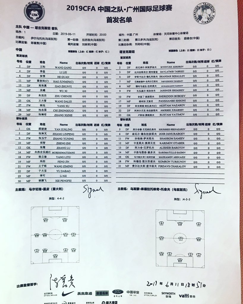 ĐỘI HÌNH RA SÂN trận Trung Quốc vs Tajikistan, 19h00 ngày 11/6: Giao hữu Quốc tế