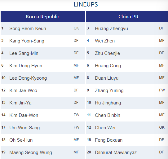 AEGoal.net cập nhật chính xác ĐỘI HÌNH RA SÂN trận U23 Hàn Quốc vs U23 Trung Quốc diễn ra lúc 20h15 ngày 09/01 trong khuôn khổ VCK U23 châu Á.