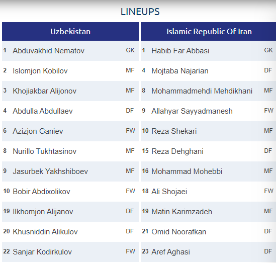 AEGoal.net cập nhật chính xác ĐỘI HÌNH RA SÂN trận U23 Uzbekistan vs U23 Iran diễn ra lúc 17h15 ngày 09/01 trong khuôn khổ VCK U23 châu Á.