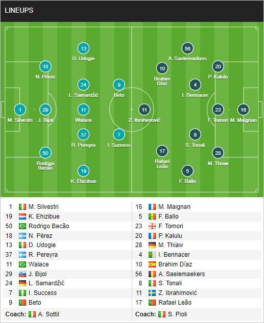 AEGoal cập nhật chính xác ĐỘI HÌNH RA SÂN trận Udinese vs AC Milan diễn ra lúc 02h45 ngày 19/03/2023 trong khuôn khổ giải VĐQG Italia.
