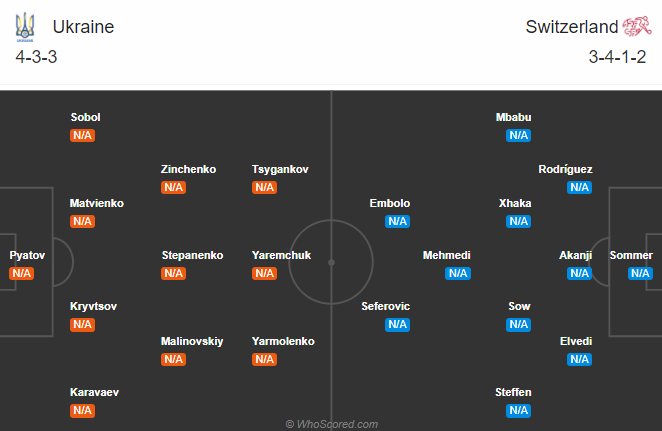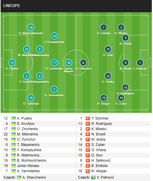 AEGoal.net cập nhật chính xác ĐỘI HÌNH RA SÂN trận Ukraine vs Thụy Sĩ diễn ra lúc 01h45 ngày 04/09 trong khuôn khổ vòng bảng UEFA Nations League.