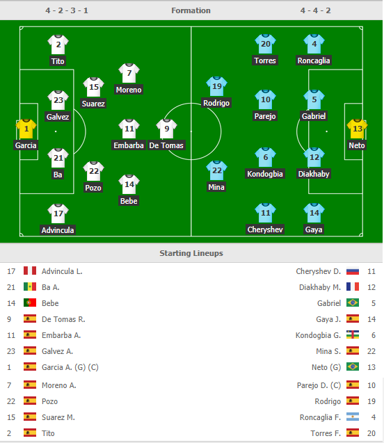 AEGoal.net cập nhật chính xác ĐỘI HÌNH RA SÂN trận Vallecano vs Valencia diễn ra lúc 23h30 ngày 6/4 trong khuôn khổ Vòng 31 giải VĐQG Tây Ban Nha.