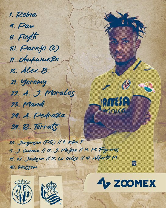 Villarreal: Rulli; Mojica, Torres, Albiol, Femenia; Baena, Trigueros, Morlanes, Pino; Jackson, Morales.