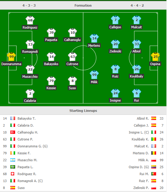 Đội hình ra sân trận AC Milan vs Napoli: