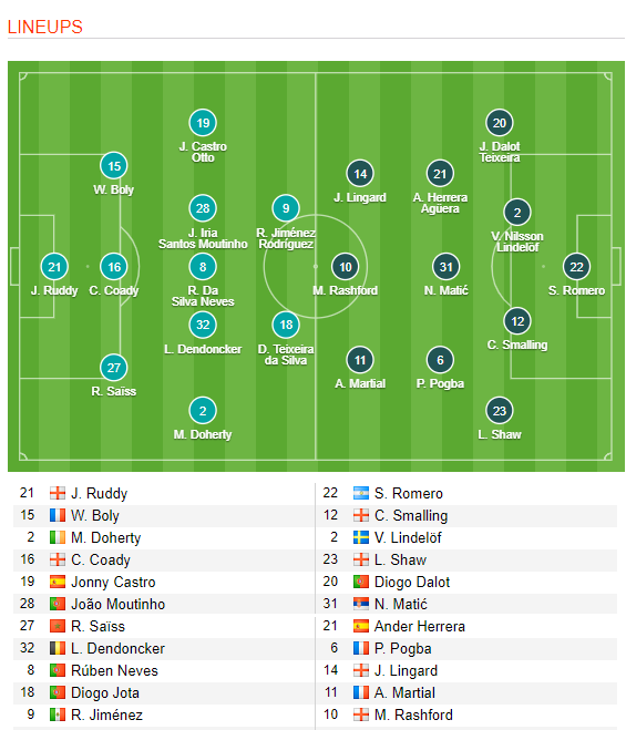 MU: Romero (GK), Dalot, Smalling, Lindelof, Shaw, Pogba, Matic, Herrera, Pereira, Martial, Rashford