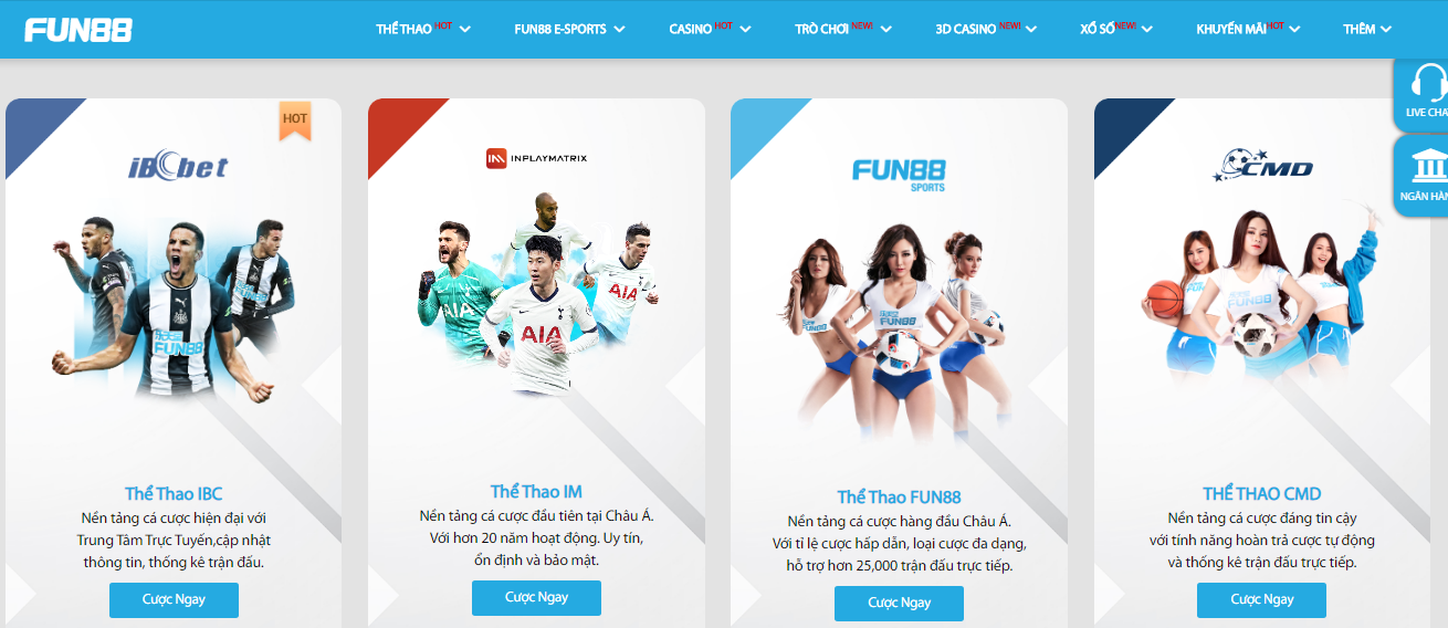 Mùa hè này dù không có Euro nhưng vẫn có các giải đấu nóng bỏng đang chờ bạn! Chần chừ gì mà không tham gia đặt cược bóng đá tại Fun88 với 4 Nhà Cung Cấp Khác Nhau! Lựa chọn đặt cược dễ dàng trong tầm tay ngay tại Fun88! THƯỞNG ĐĂNG KÝ 100% TẠI THỂ THAO LÊN ĐẾN 3.8 TRIỆU ĐỒNG!