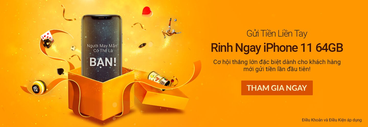 Gửi Tiền Liền Tay, Rinh Ngay Một iPhone 11 64GB.Chỉ cần thực hiện gửi tiền thành công vào tài khoản 188BET, quý khách sẽ nhận được tự động tham gia rút thăm may mắn sau khi kết thúc khuyến mãi với cơ hội thắng một iPhone 11 64GB mới toanh, hoặc quý khách có thể quy đổi phần thưởng thành tiền thưởng 18,000,000 VND!