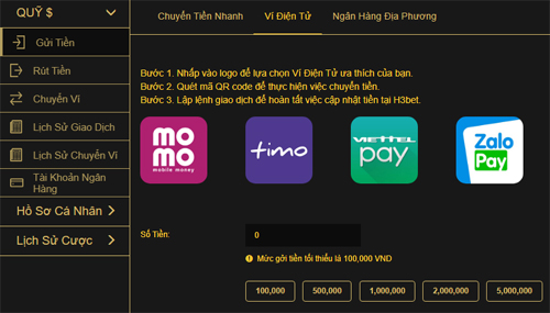 Chuyển và rút tiền nhanh chóng ở H3bet