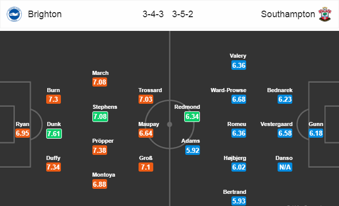 Cập nhật thông tin lực lượng và đội hình dự kiến chính xác nhất trận Brighton vs Southampton diễn ra lúc 21h00 ngày 24/8 trong khuôn khổ vòng 3 giải Ngoại hạng Anh.