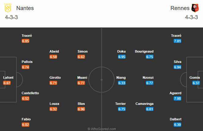 Thông tin lực lượng và đội hình dự kiến trận Nantes vs Rennes (01h00)
