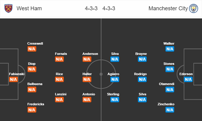 Thông tin lực lượng và đội hình dự kiến trận West Ham vs Man City, 18h30 ngày 10/8