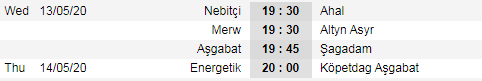 Ngay trong thời gian giữa tuần này vòng 8 giải VĐQG Turkmenistan sẽ được diễn ra, vòng đấu tiếp theo sẽ được diễn ra vòng ngày thứ 2 và thứ 3 tuần tới. Hiện tại Ahal đang là đội giữ ngôi đầu BXH với 15 điểm dù mới chỉ đá 6 trận đấu.