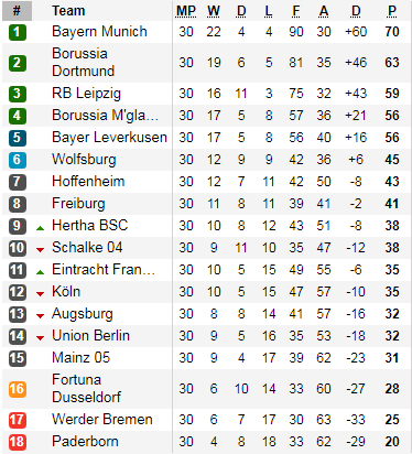 Bảng xếp hạng giải VĐQG Đức