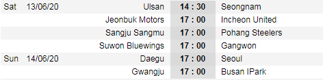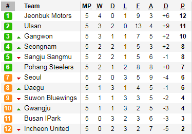 Tại châu Á, giải VĐQG Hàn Quốc tiếp tục diễn ra vòng đấu thứ 6. Jeonbuk vẫn đang duy trì sự ổn định với vị trí đầu BXH, Ulsan đang đứng thứ 2 với chỉ 1 điểm ít hơn.