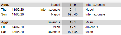 Cuối tuần này bóng đá Italia trở lại sau thời gian nghỉ dịch bằng 2 trận lượt về bán kết cúp QG. Cặp đấu giữa Juventus và AC Milan được diễn ra vào rạng sáng ngày thứ 7 theo giờ Việt Nam, trận đấu còn lại giữa Napoli và Inter Milan được tổ chức 1 ngày sau.