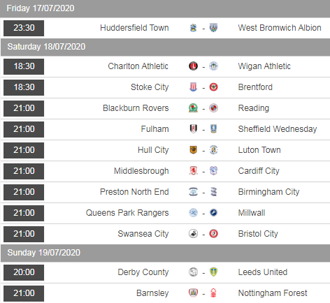Tổng hợp lịch thi đấu bóng đá diễn ra tuần này (từ ngày 13/7/2020)