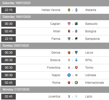 Lịch thi đầu vòng 33 và 34 giải VĐQG Italia - Serie A