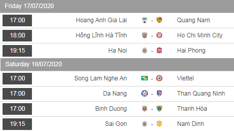 Cuối tuần này vòng đấu thứ 10 của giải VĐQG Việt Nam - V-League cũng được diễn ra với 3 trận đấu vào chiều thứ 6 và 4 trận đấu được diễn ra vào chiều ngày thứ 7 (18/7)