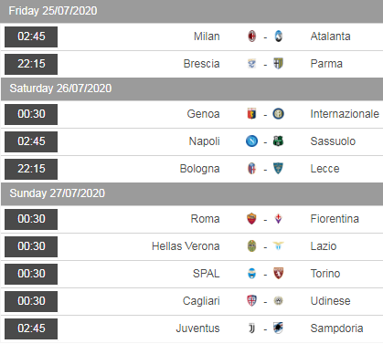 Lịch thi đấu 35 và 36 giải VĐQG Italia - Serie A