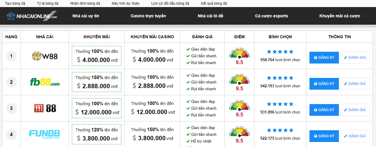 Bài viết dưới đây giới thiệu đến bạn đọc Top 10 trang thông tin tổng hợp nhà cái uy tín nhất, được nhiều cược thủ quan tâm nhất hiện nay. Cùng theo dõi nhé!