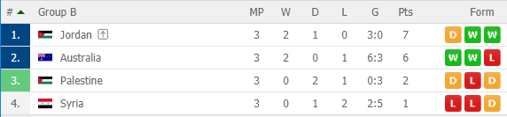 AEGOAL liên tục cập nhật diễn biến lượt trận cuối bảng B Asian Cup 2019 diễn ra lúc 20h30 ngày 25/1. Với 2 trận Australia vs Syria, Palestine vs Jordan.