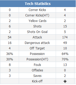 Tỷ số phạt góc: 0-4 (hiệp 1: 0-4)