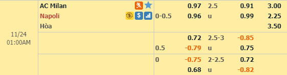 Dự đoán, phân tích kèo trận AC Milan vs Napoli thuộc khuôn khổ vòng 13 giải VĐQG Italia.