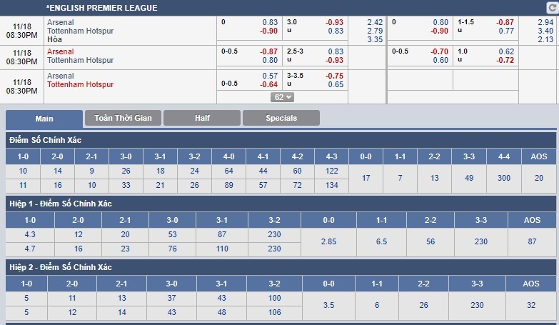 Tổng bàn thắng cả trận: Vấn đề của Arsenal có lẽ chỉ nằm ở khả năng tận dụng cơ hội và một chút tâm lý chưa thực sự tốt kể từ đầu mùa. Bởi đội chủ nhà vẫn có trong tay đội hình khá chất lượng với Ozil, Sanchez và đặc biệt là chân sút đang có phong độ cao Lacazette. Trong khi đó, Tottenham tất nhiên không phải đội có hàng thủ được đánh giá cao, mà ngược lại đội khách thường lấy công bù thủ đã trở thành nét đặc trưng. Hơn nữa, đây là cặp đấu truyền thống để lại với những kết quả tưng bừng bàn thắng. Chọn Trên 3 bàn thắng cả trận.